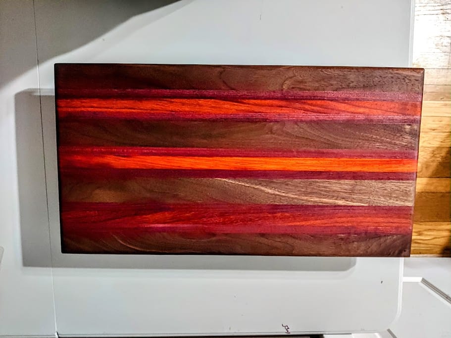 Cutting Boards and Charcuterie Trays finished with Mineral Oil need to be refinished with Mineral Oil periodically! A typical board should be refinished every 1-3 months, dependent on frequency of use.